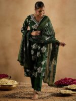 Be the first to review “Dark Green Floral Pure Cotton Kurta With Trousers & Dupatta”